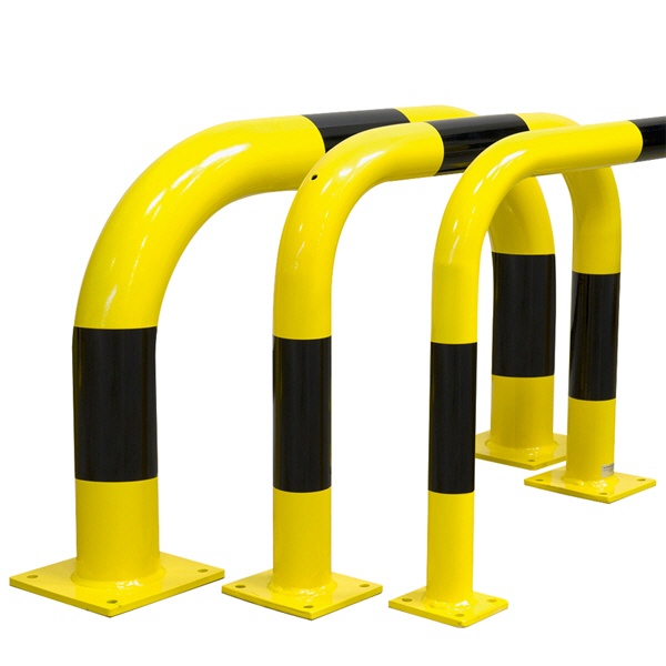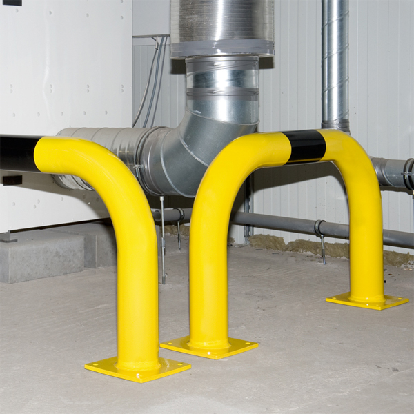 Extrem belastbarer Rohrbügel aus Gütestahl (Ø 108 mm) zum Schutz vor Anfahrschäden.