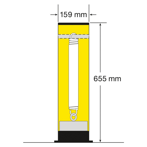 Minimiert Beschädigungen am Poller und dem Fahrzeug (Stapler, LKW). Der Poller neigt sich bis max. 25° und stellt sich automatisch in die Ausgangsposition zurück.