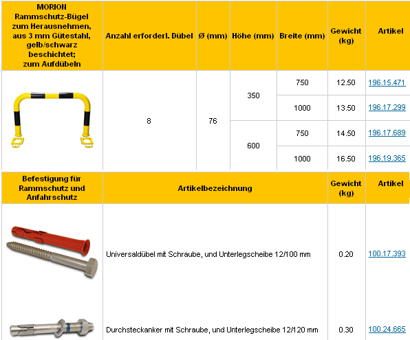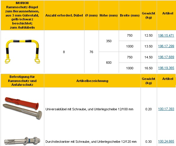 MORION Rammschutz-Bügel zum Herausnehmen sind hoch belastbare Schutzbügel aus Gütestahl zum Wegnehmen mittels besonderer Bodenplatte.