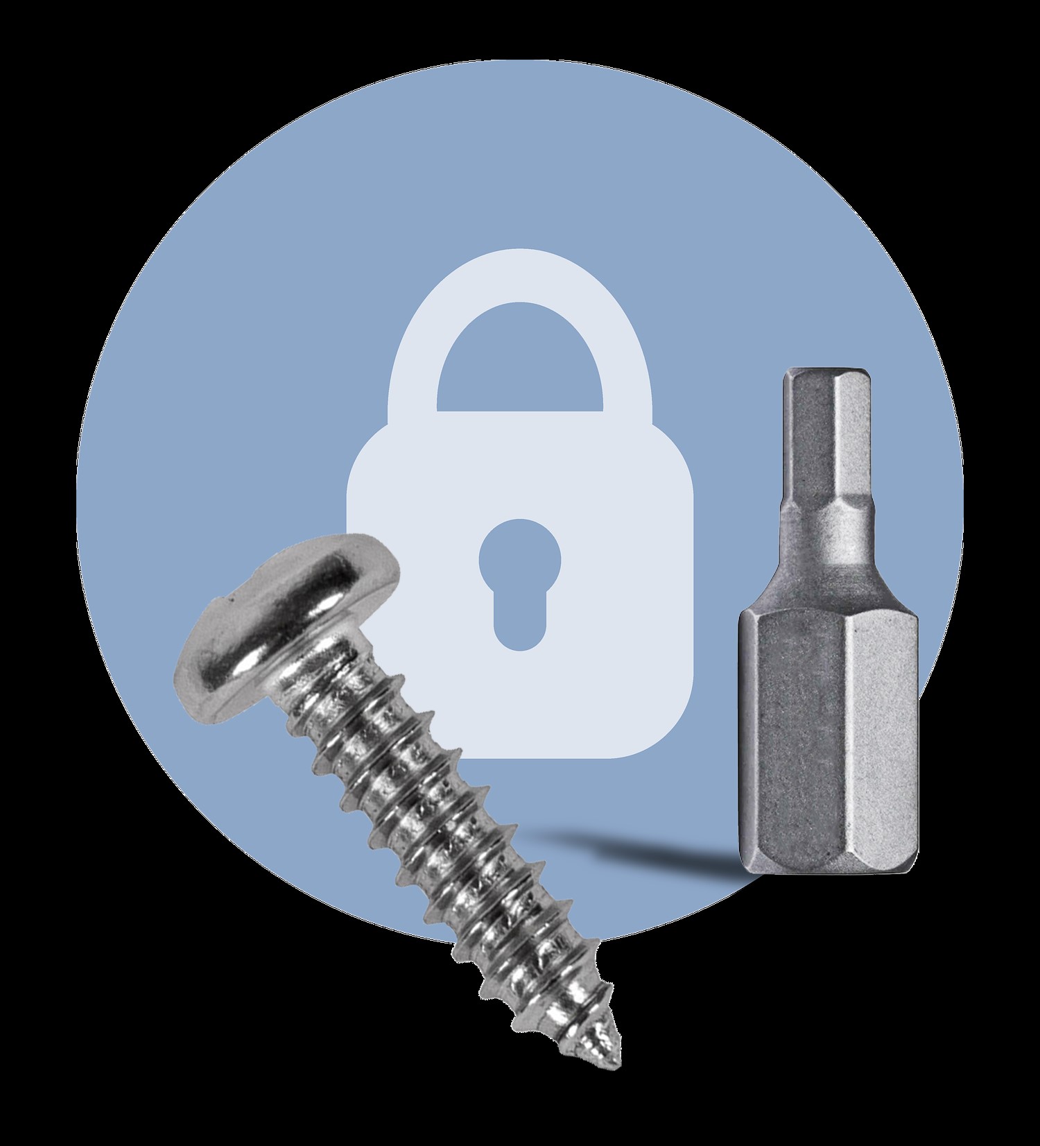 Art.-Nr.: Q072-35019-2 = Senk-Blechschraube mit TORX 3,5x19, A2-70, DIN 7982 TX (mit Sicherheits-Pin für Wildwarnreflektoren) (Verkaufseinheit = 4 Stück) . H.0000.00003 = Spezialbit 1/4 Zoll x 25mm, Schlüsselweite (SW) 2 |